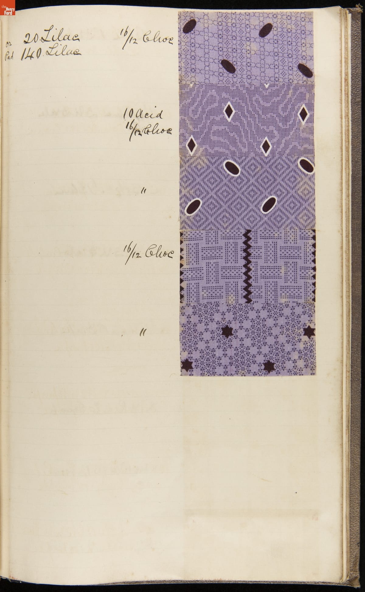 Textile samples notebook created by Washington Anderton for Cocheco Manufacturing Company, Lawrence, Massachusetts.