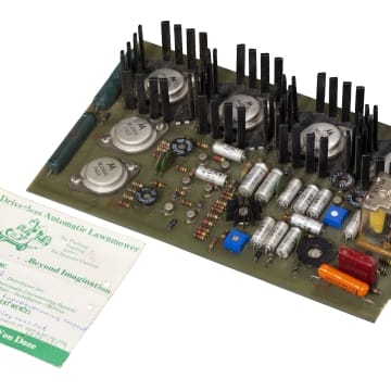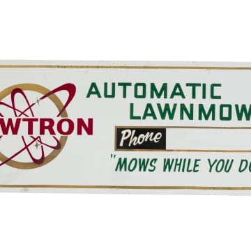 "Mowtron...Mows while you Doze!" The American Marketing and Sales Company stressed computerized operation to encourage adoption of its autonomous lawn mower. The machine followed signals emitted by a transistorized guidance system, eliminating the need for homeowners to dedicate valuable time to lawn care. Built-in features like sensitized bumpers eased safety concerns, though sales fell far short of the company's dreams.
