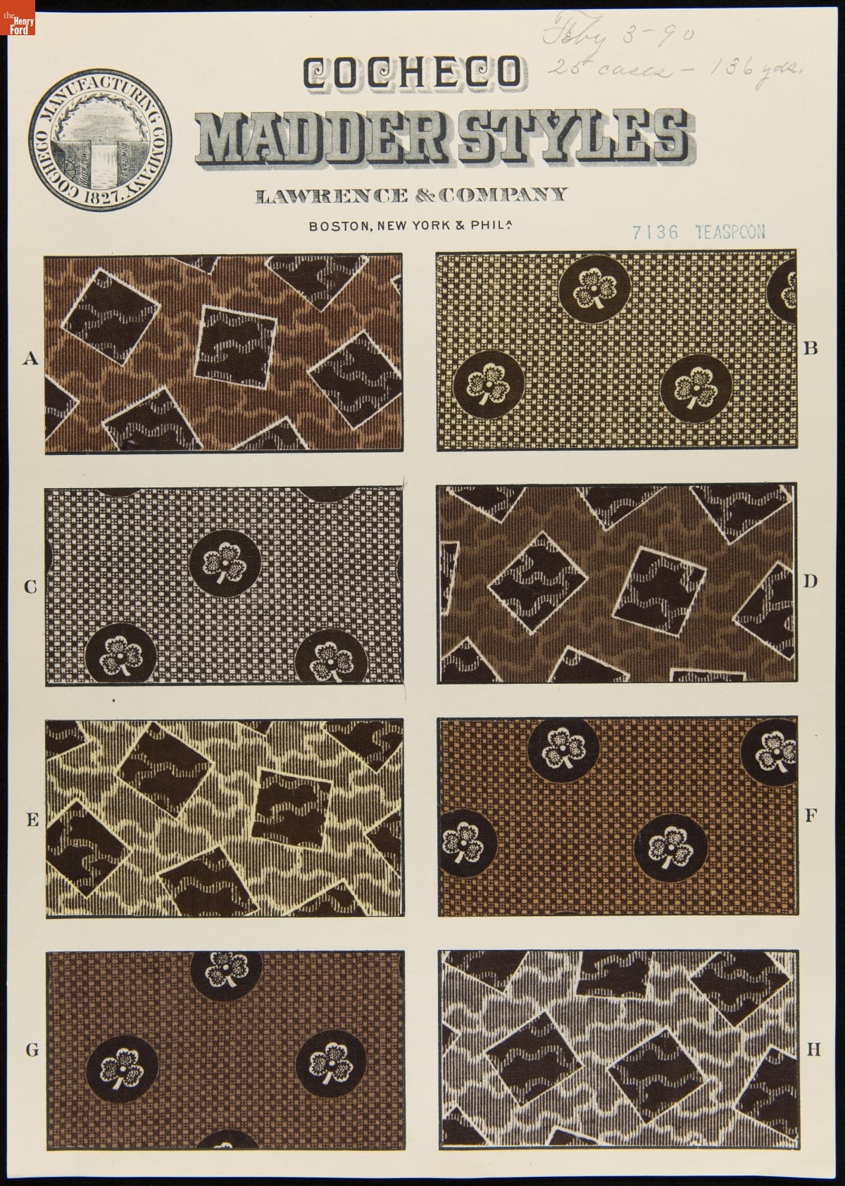 Sample Card for Textile Fabric Style No. 7136, "Teaspoon," Cocheco Mfg. Co., February 3, 1890