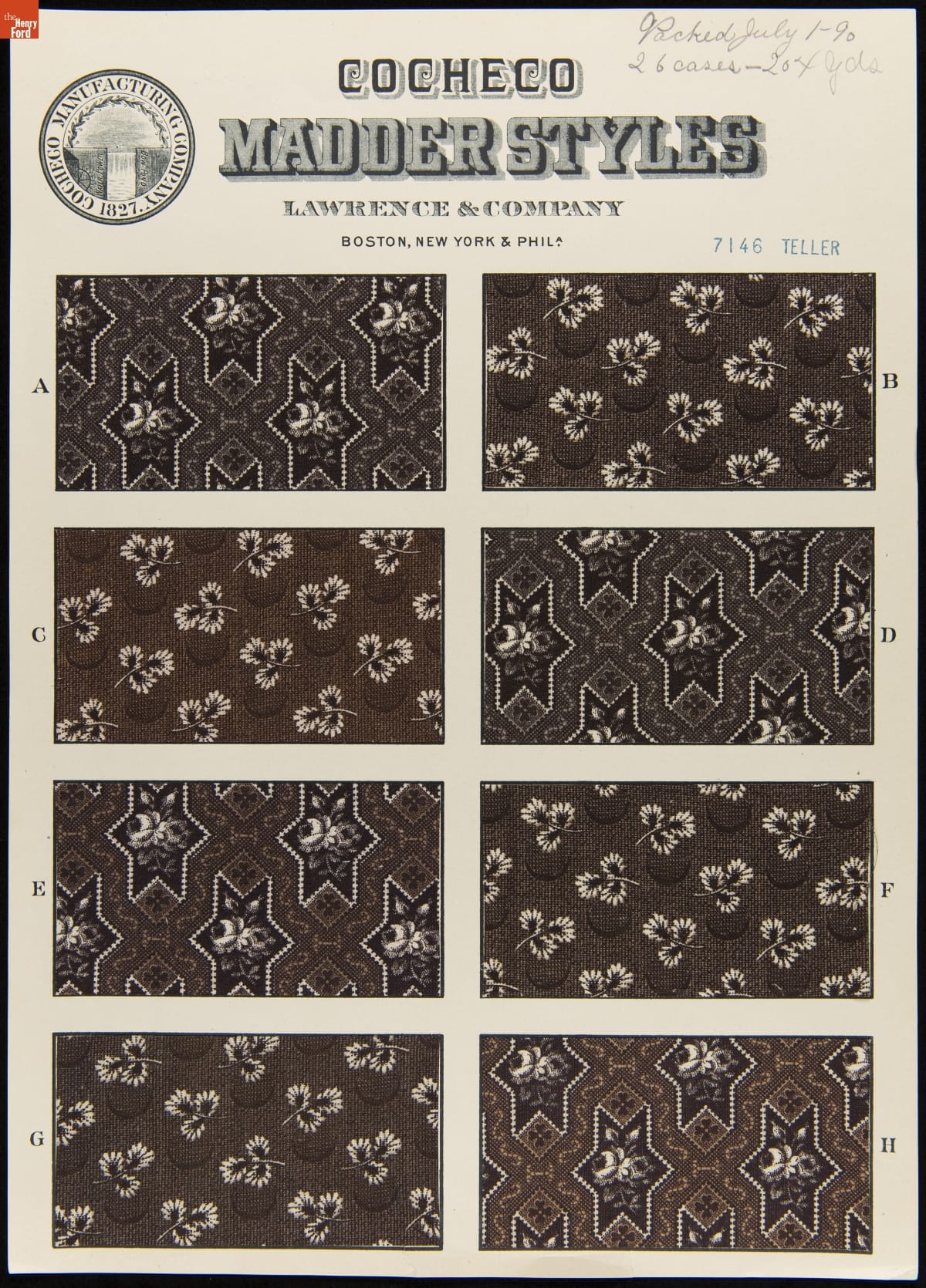 Sample Card for Textile Fabric Style No. 7146, "Teller," Cocheco Mfg. Co., July 1, 1890