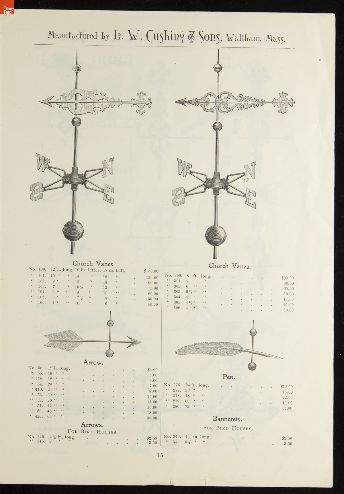 Catalogue of Weather Vanes Manufactured by L.W. Cushing and Sons, 1883 / page 15