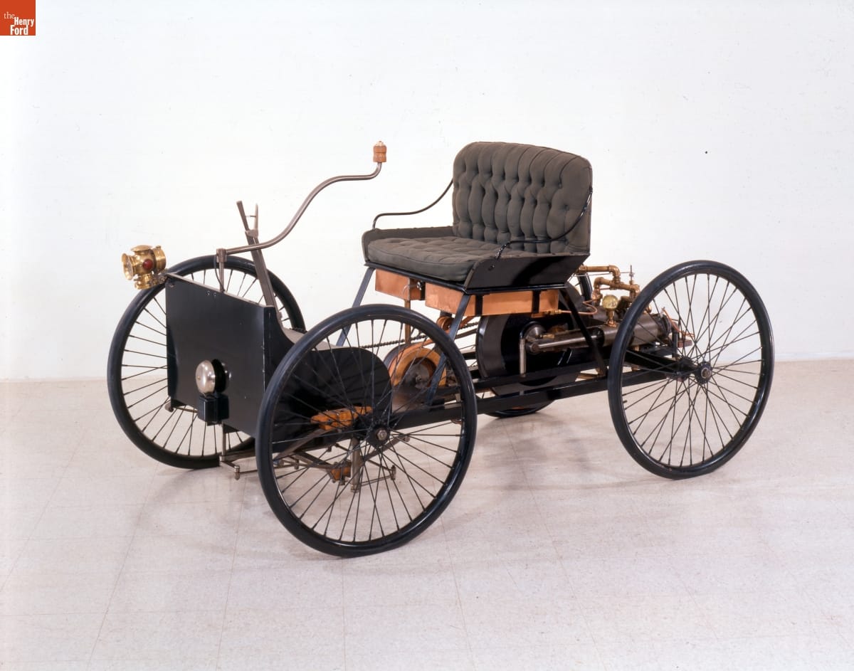 George DeAngelis built this replica of Henry Ford's first automobile, the 1896 Quadricycle, for the centennial of Ford's birth in 1963. DeAngelis spent three years on the project, working nights and weekends. He built most of the vehicle's parts from scratch. DeAngelis drove the replica through Detroit on June 4, 1963 -- exactly 67 years after Ford first drove the original.