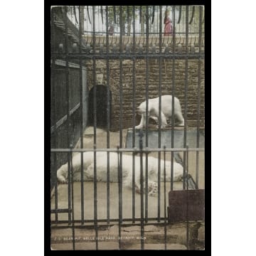 Multiple zoos have operated on Belle Isle Park in Detroit, MI. The first Belle Isle Zoo ran from 1886 until 1956 and was known for exhibits such as the fallow deer enclosure and the bear pit. Built in 1901, the bear pit housed several species during five decades of operation: grizzly bears, black bears, and polar bears, pictured here.