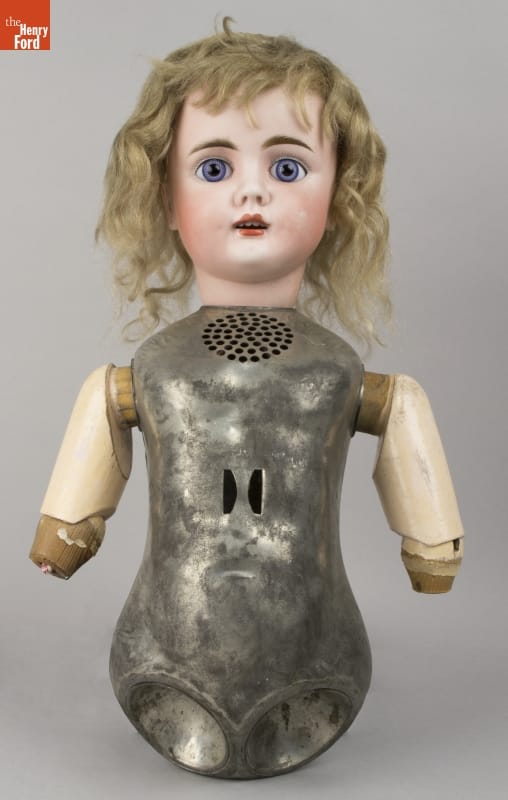 Thomas Edison's 1878 patent for a "phonographic" doll resulted in the production of about 100 "talking" dolls between 1889 and 1890. This doll "talked" by means of a scaled-down phonograph inside its body, which played nursery rhymes like "Mary Had a Little Lamb." Only made for a short time, the doll's mechanism was unreliable and the recorded voices scared children.