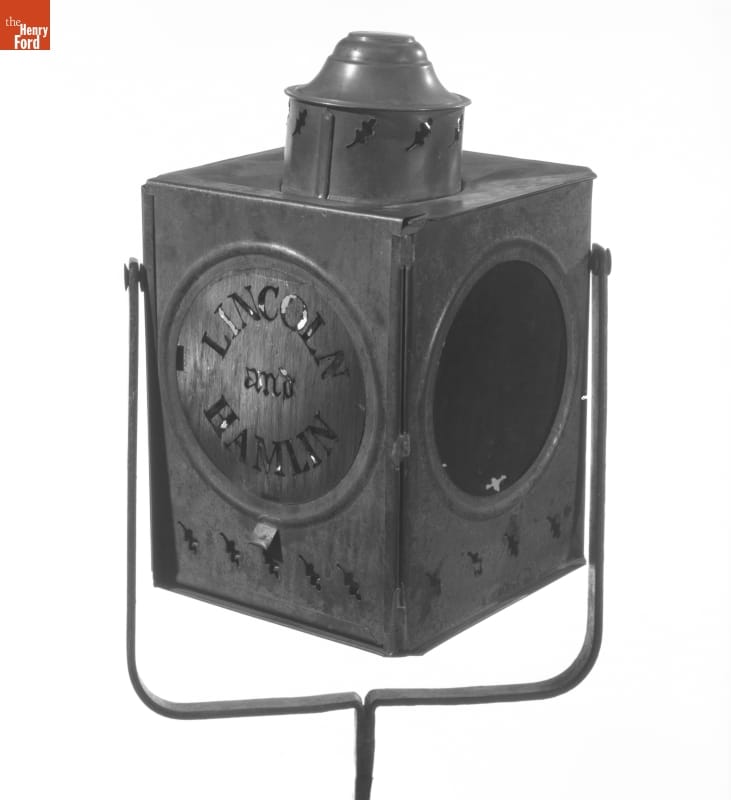 Late-nineteenth-century political parties rallied their supporters by holding torchlight parades. In the evening, marchers lit up the street carrying torches, lamps and lanterns. Many of these political lanterns glowed with the names of the candidates, slogans and patriotic symbols. Supporters of Abraham Lincoln and Hannibal Hamlin--the Republican ticket in 1860--would have carried a lantern like this during the nighttime festivities.