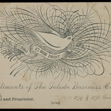 Trade Card for the Toledo Business College, Matthew H. Davis, 1881-1894