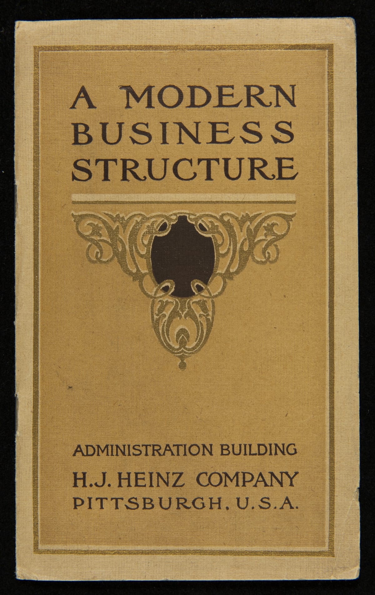 By the early 1900s, the H.J. Heinz Company had become well-known in the manufactured food industry. Its success resulted in the expansion of its production and distribution operations, which in turn created a need for larger executive quarters. This booklet provides an overview of the Administration Building at the Pittsburgh, Pennsylvania, factory, and describes the mural decorations which adorn its walls.