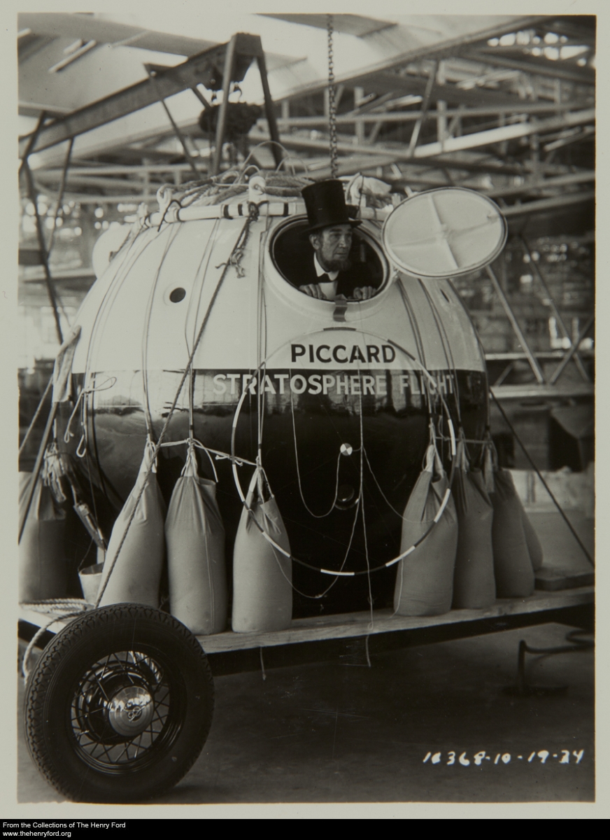 On October 23, 1934, the husband-and-wife team of Jean and Jeannette Piccard navigated a balloon as high as 10.9 miles above the earth, starting from Dearborn, Michigan, and landing many hours later hundreds of miles away in Ohio. This flight reached the stratosphere, and set the women’s altitude record for Jeanette, which she held until the early 1960s. The Henry Ford has digitized about 40 photographs and documents related to the flight, including this quirky photo of Charles Roscoe Miles, a Lincoln portrayer visiting Dearborn at the invitation of Henry Ford, examining the gondola a few days before the flight. Find more material documenting the adventure before, during, and after the flight on The Henry Ford’s collections website. (If you want even more, browse additional Piccard material in the digital collections of the Detroit Historical Society, and read their accompanying blog post.)