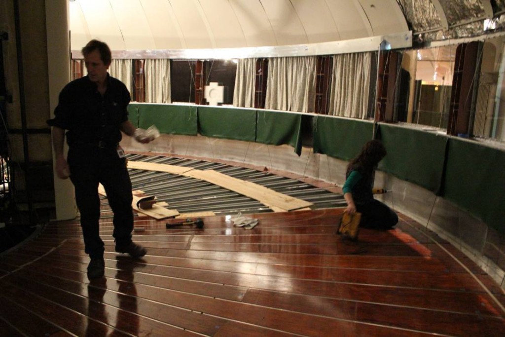 Meanwhile, we worked with staff carpenters to make a new “over-floor” of plywood to install under the carpet. This serves to spread the load of visitors’ foot-falls, reducing that flexing stress that causes fatigue in metals.
