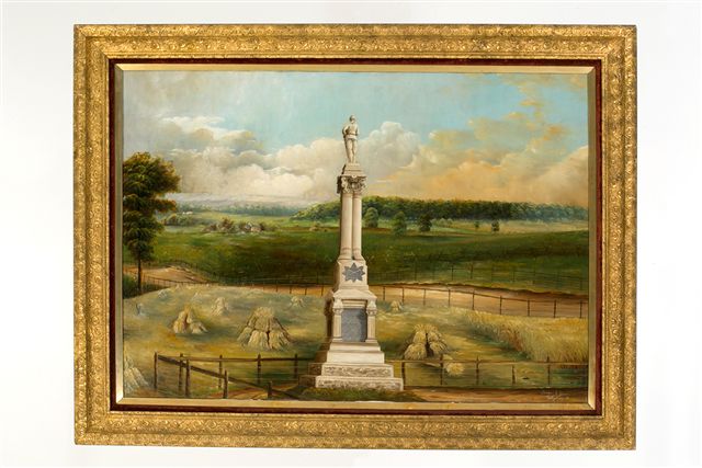 A few months ago, The Henry Ford’s staff came upon an intriguing object in our collection—a late 19th century painting of the Michigan Cavalry Brigade Monument in Gettysburg, Penn. In this painting, the figure of a soldier at the top of the monument gazes out over the field where this famed Civil War unit fought fiercely on July 3, 1863, helping to assure Union victory on the final day of the Battle of Gettysburg.