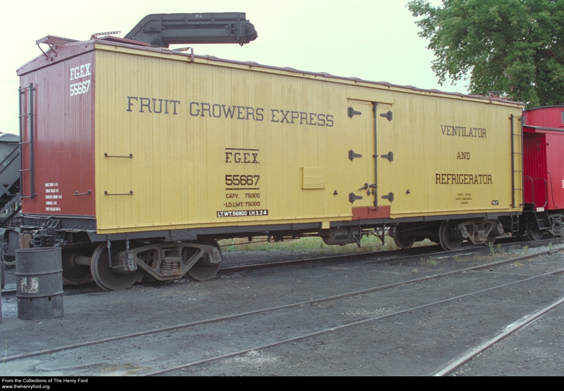 Some of the ice harvesters worked as farmers or fishermen in warmer months; some were imported from nearby cities to work the ice fields. Whatever their makeup, when ice harvesting crews gathered in January and February, they faced a complex and sometimes dangerous challenge. First, the ice had to be scraped clear of snow and, when the surface was too rough to be cut, planed smooth. Workers bored holes to measure the thickness of the ice, and then used a marker or groover to etch a grid of rectangles across the ice field. Next, an ice plow followed these lines, cutting about two-thirds of the way into the ice. If the ice was going to be used locally, the rectangular blocks of ice — called “cakes” — were chipped off and loaded onto wagons or sleighs for direct delivery. Otherwise, harvesters broke off large sections of the grooved ice field using saws and other hand tools. Workers guided these rafts of ice through a channel, where men broke the sheets into individual cakes and fed them up an elevator conveyor into an ice house. There, workers arranged the ice cakes into layers for storage and later delivery. If the ice house was located along the railway – and many were – blocks of ice could be loaded directly into refrigerated rail cars.