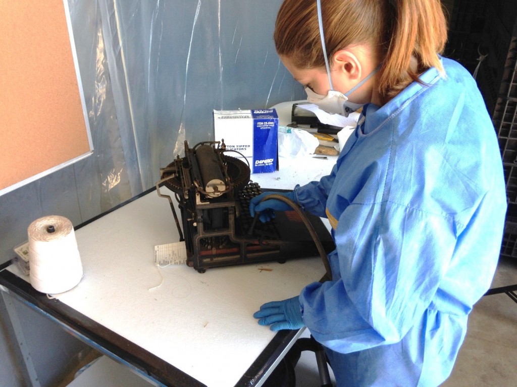 Conservation: Even though the artifacts were given a quick cleaning before they came into the labs, a more thorough cleaning is done and notes are taken to record its condition the database records. This also gives the Conservation portion of the IMLS team an opportunity to make any repairs necessary to stabilize the artifacts so they will be in better condition to be handled. Often we encounter corrosion (rust), old tape residue, and maybe small broken pieces that must be repaired in order to protect ourselves, the artifact, and those who will handle these artifacts in the future.