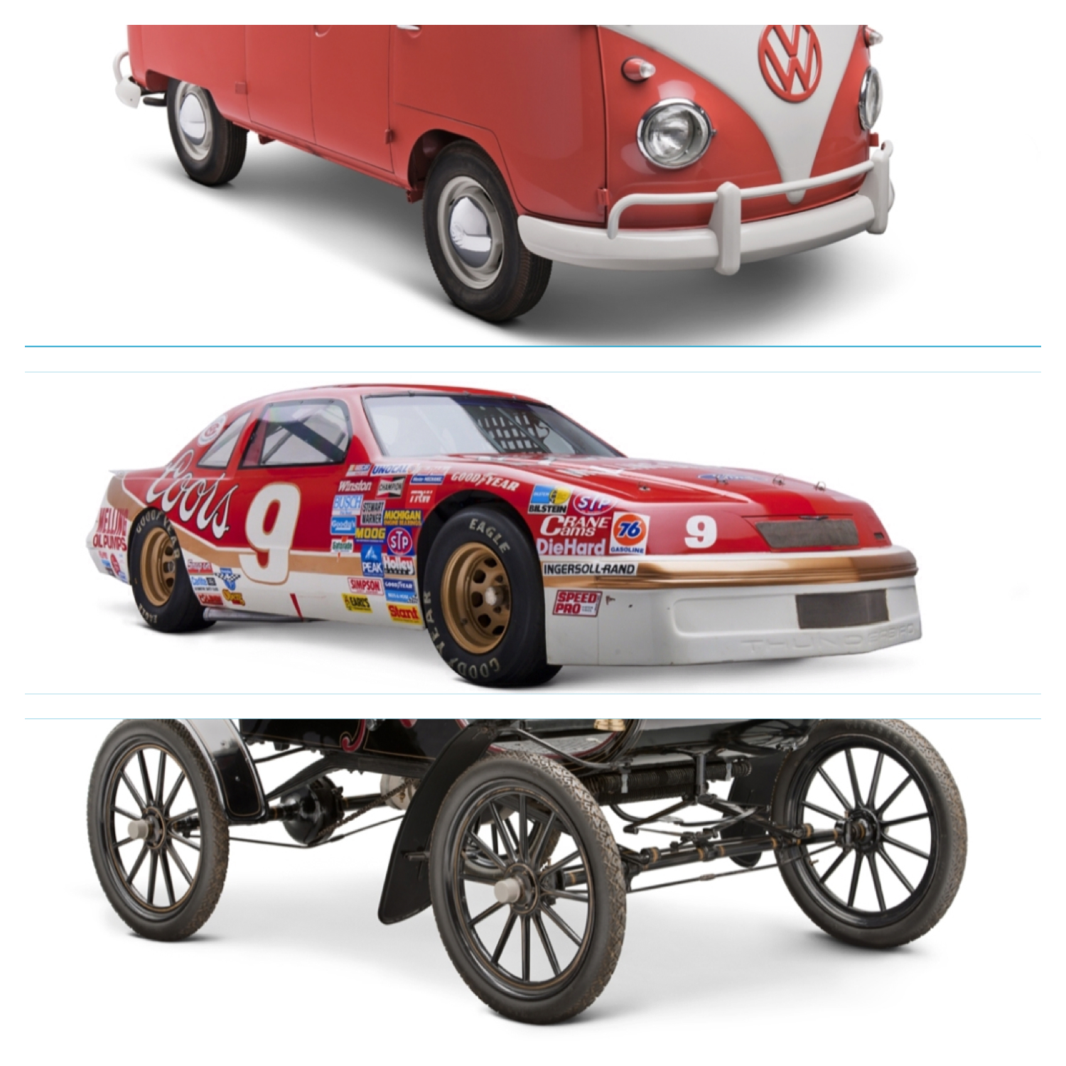 But like the collection itself, Driving America tells as much a story of those who’ve designed, built and driven across two American centuries as of the vehicles themselves. Innovation and ingenuity reflect in Oldsmobile’s 1903 Curved Dash Roundabout, and the 1997 General Motors EV1; family and adventure in the 1984 Plymouth Voyager minivan and the 1959 Volkswagen Westfalia camper; triumph and tragedy in the 1987 Ford Thunderbird Stock Car, and in President Kennedy’s 1961 Lincoln Continental limousine.