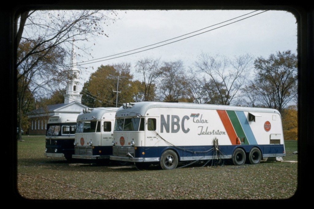 In October, NBC shows would broadcast three live remotes for three separate shows -- Today, Home and Howdy Doody -- from Greenfield Village. The programs would also be in color! Preparations began in September for the October 25th telecasts. Fifty Village volunteers and staff were recruited for on air participation. Just as many enlisted for behind-the-scenes work: grounds crews, catering staff, carpenters, mechanics, costumers, security, and others who provided last--minute services.