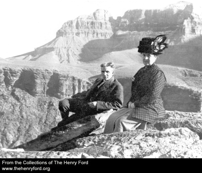 Yet Henry Ford's interest in nature was not new or merely a public relations gambit. Here he is with Clara at the Grand Canyon in 1906. They were avid birders and had over 500 birdhouses installed amid the naturalistic landscaping (designed by famed landscape architect Jens Jensen) of their Fair Lane Estate. John Burroughs helped them rehabilitate the adjoining land and reintroduce wildlife to the area.