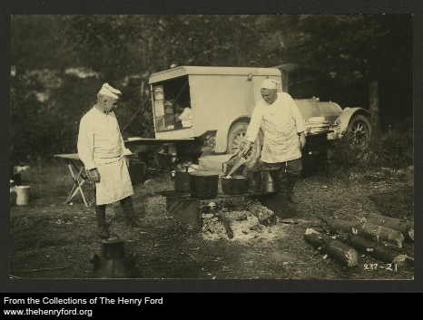 The group traveled in style and their adventures were well-documented and publicized. Equipment used by the party included a folding circular camp table with lazy Susan seating twenty (pictured above), a twenty-square-foot dining tent, sleeping tents with mosquito netting, a gasoline stove and a refrigerated Lincoln camping truck. A professional chef prepared the group's meals and film crews and numerous outside journalists followed in their wake. Ford complained of the attention and its hampering effects on their trips, but there are strong indications that he nevertheless relished the publicity. (Photos found here and here.)