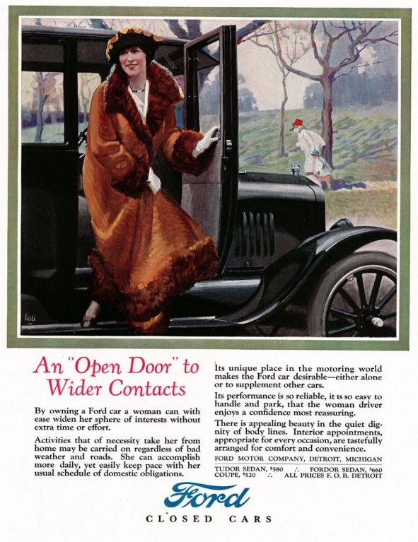 “By owning a Ford car a woman can with ease widen her sphere of interests without extra time or effort.”