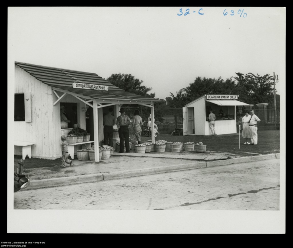 The “Detroit market” was built on the edge of Greenfield Village, at the corner of Village and Southfield roads in Dearborn. It was run by the students of the Greenfield Village schools, who sold the produce of their gardens.