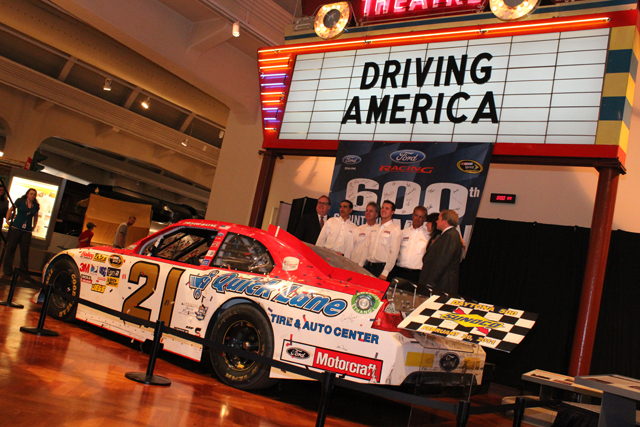 The Wood brothers and driver Trevor Bayne were in Dearborn yesterday to present to Henry Ford Museum that really big something: the famous No. 21 Ford Fusion that a 20-year-old Bayne drove to an unlikely victory in the 2011 NASCAR Daytona 500.