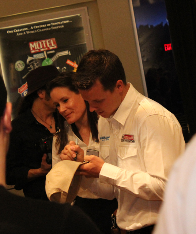 Trevor Bayne graciously autographs fan's hat at Henry Ford Museum.