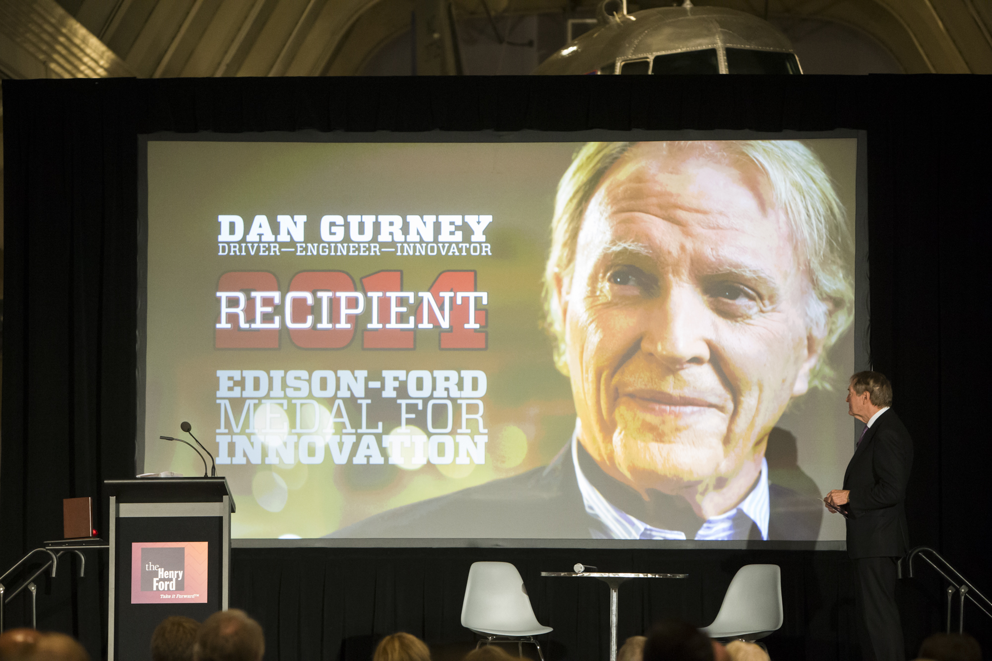 On October 29, 2014 Dan Gurney received the Edison-Ford Medal for Innovation in a ceremony at The Henry Ford, with Charlie Rose as Master of Ceremonies.