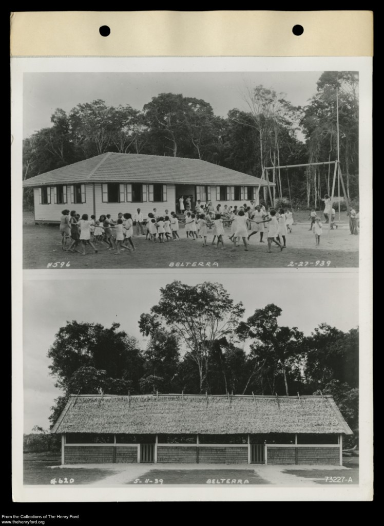 Henry Ford – stubborn and proud and innovative – decided to try again. A new location for a second plantation was selected in 1931, land farther downstream from Fordlandia on the Tapajos River. This new plantation was named Belterra, and from the start it fared much better than Fordlandia ever had – in large part because Ford greatly relaxed his policies of social control that had failed in Fordlandia. He allowed some traditional Brazilian customs to be incorporated into Belterra daily life, such as traditional local eating habits and musical instruments. The second time around, however, Henry Ford wanted to expand his vision for a “Dearborn in the Jungle.” He was willing to loosen up on many things, but one area where he would not budge was the type of educational structure he envisioned at Belterra.