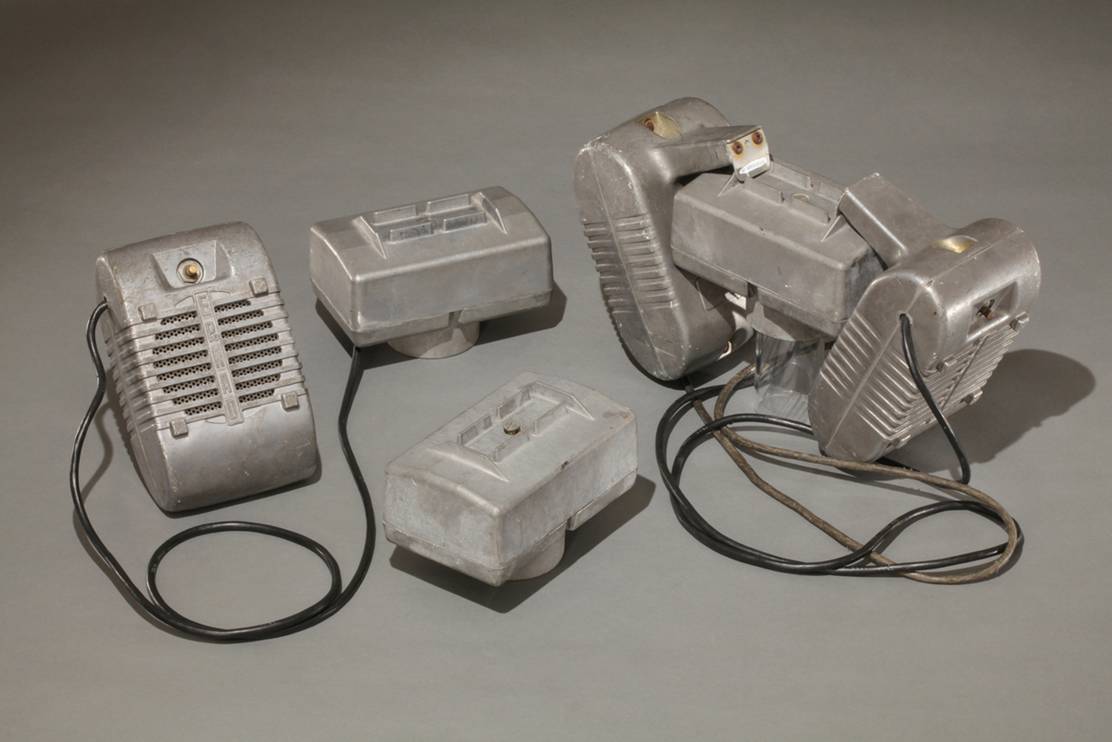 Right now, the emptiness of the Ford Wyoming—no cars, blank screens, dead silence—is amplified by our presence, two figures buffeted by the wind. I look down and see a discarded pine tree car deodorizer lying in the sandy gravel. Virgil and I are headed toward the one place that drive-in patrons never get to go – the projection booth. Like most theatres, the Ford-Wyoming is converting their projectors to digital, and this is the reason I am here. The previous morning, I had received a call with a certain sense of urgency. The last of the 35mm machinery was headed for the dumpster, and I made an appointment to take a look to see if there were any items that might be added to the museum’s collection. We climb steep industrial iron stairs, up to the booth, and I wonder how the projectionists don’t trip down them in the dark carrying flashlights and film cans. Virgil tells me that he used to get the occasional flustered phone call from late-night projectionists: “I dropped the film reel down the stairs and it unraveled.”