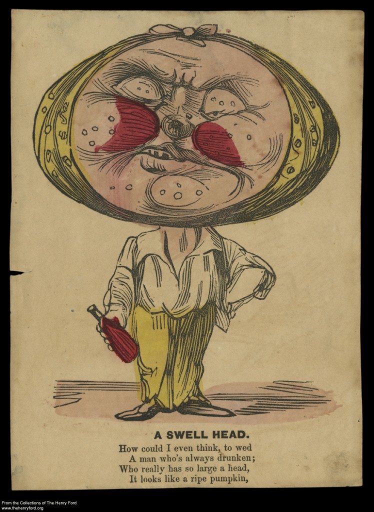 From the 1840s into the early 1900s, these vinegar valentines followed a formula—an exaggerated, often garish cartoon followed by an insulting little verse describing and dismissing someone’s looks, intelligence, personality, or behavior. They varied in tone, from a bit snide and sarcastic to downright offensive. Sometimes they seemed almost threatening, presenting the recipient with an ultimatum to change his or her behavior or else. They could be sent to reject someone’s romantic overtures but they were also aimed at spinsters, henpecked husbands, drunkards, showoffs, brutes, people considered lazy or stupid, and even the underhanded behaviors of people in certain occupations. No one, it seemed, was safe from the possibility of receiving one of these. Furthermore, although women had traditionally been the major senders of Valentine’s greetings, these seem to have been equally sent by both men and women.
