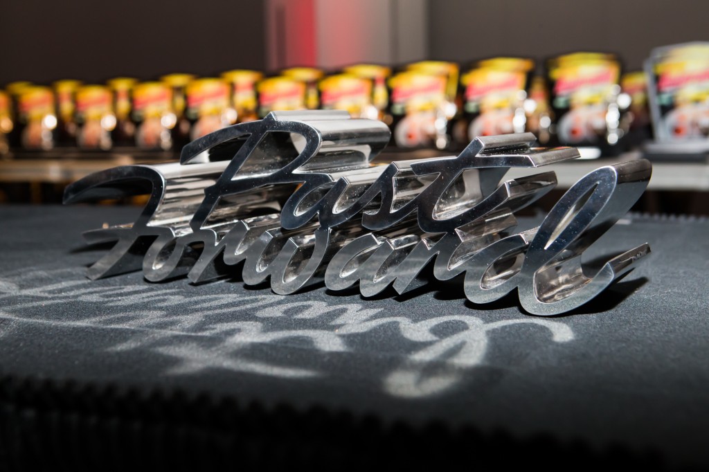For the second year in a row, The Henry Ford honored one vehicle with its Past Forward Award. We give the prize to a car that combines past traditions with modern innovations, shows exceptional technical skill, and exhibits that all-important quality central to the customizer’s art: fun! The trophy itself deserves a few words. Andy Cruz and the typeface masters at House Industries created an incredible piece for us to give to our winners. Inspired by the flowing-script make and model names that adorned so many fenders in the 1950s and 1960s, our award consists of a chrome-plated stainless steel calligram that simultaneously reads “Past Forward” and represents the classic nameplates that fuel the rodder’s and customizer’s hobby. (For more on House Industries and their work on the trophy, see here.)