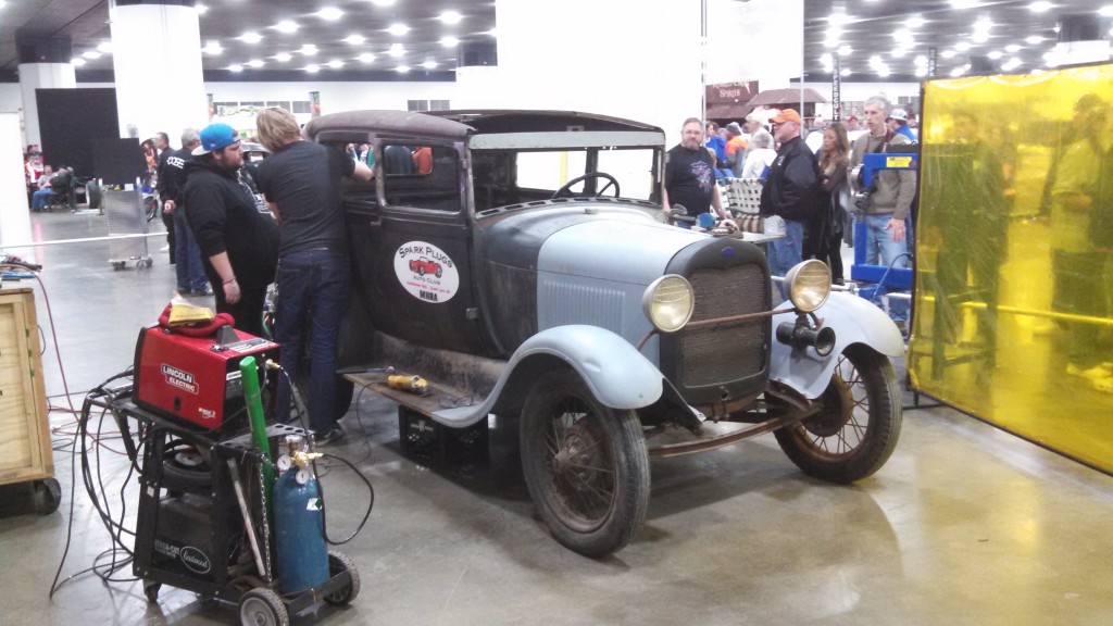 If the main floor was fancy, then the lower level was funky. It was the domain of the rat rods – those purposely rough-looking cars that thumb their grilles at the showpieces upstairs. It was also home to one of Autorama's greatest displays. Gene Winfield’s Chop Shop expanded its California-based garage with a sort-of satellite facility right there in Cobo. When I stopped to watch on Sunday afternoon, the Spark Plugs Auto Club of South Lyon, Michigan, had a 1929 Model A Ford under the hammer, but customizers were shaping metal and chopping rides in that space all weekend long.