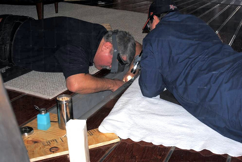 Last year we did some rather major surgery on the Dymaxion House. We opened up the floor and patched all 96 aluminum floor beams to reinforce them where many had developed cracks.