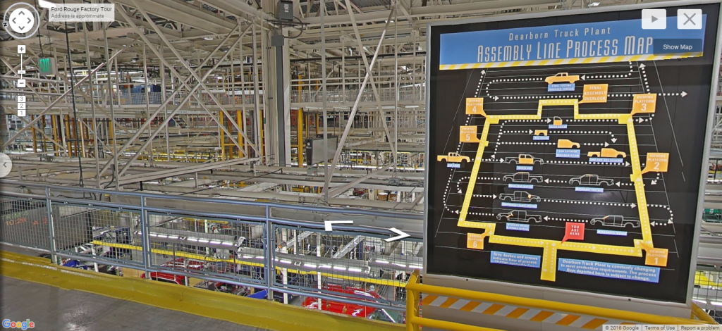 - A virtual visit to the Ford Rouge Factory Tour, using Google Street View. Move around more than 100 distinct points at the Rouge and zoom in to see details of the assembly plant, the artifacts of the legacy gallery, and the amazing views from the observation deck.