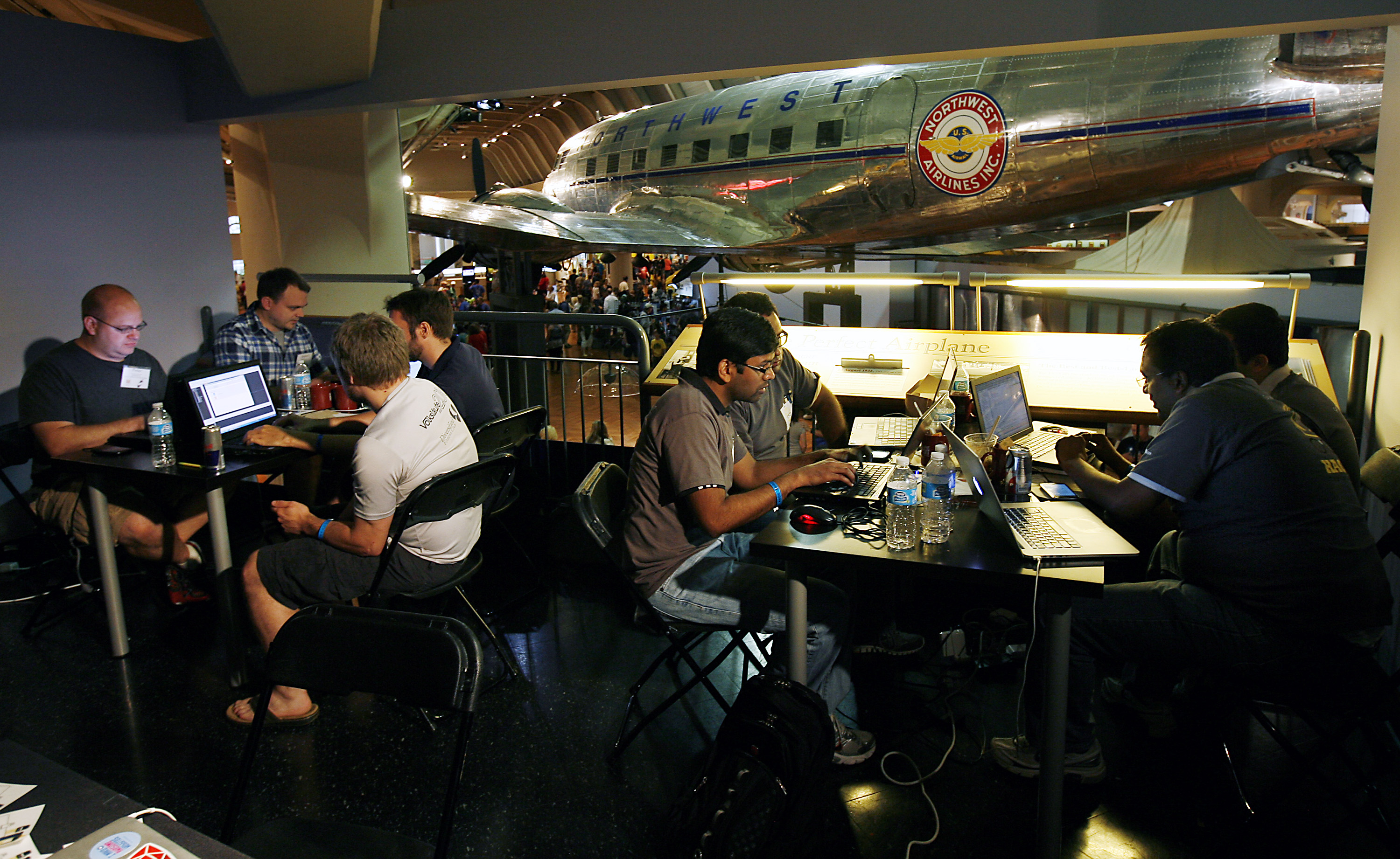 Nestled above the “Heroes of the Sky” exhibit toward the back of the museum, six teams worked all day Saturday trying to create the most unique app for us possible. Nineteen participants, some local, some from out of town, consumed a lot of caffeinated beverages and wrote a lot of code as the faire happened around them.