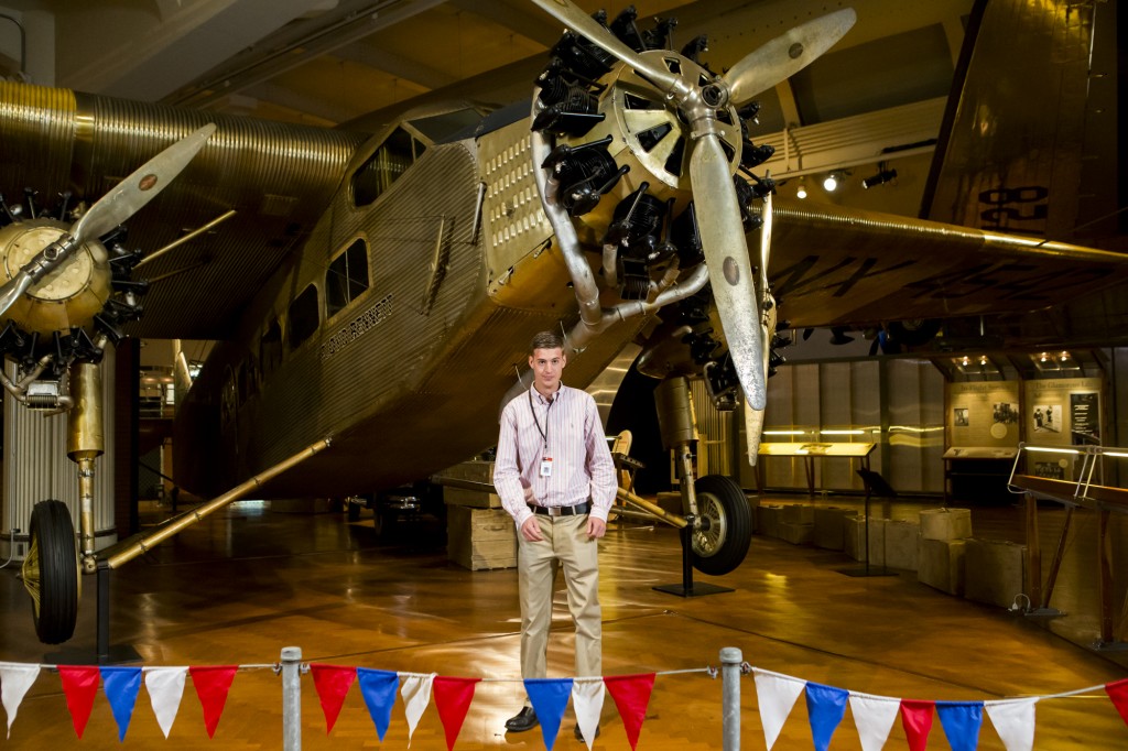 One of the shoots took place around the 1928 Ford Tri-Motor, the plane that Admiral Richard E. Byrd made famous when he used it for the first airplane flight over the South Pole in 1929. In general, these all-metal Tri-Motors were some of the first successful commercial airplanes. As a gift from Edsel Ford to Admiral Byrd for his 1929 expedition, it makes sense that this plane would eventually find its way into The Henry Ford’s collection. During my time as a stand-in, I had the chance to examine the beauty of the plane in an up close and personal way. As I found out, hundreds of other people had already had the same opportunity.