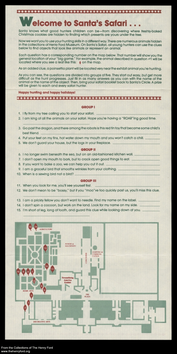 While you might not think of a safari when you first think of the museum, children were definitely on the lookout with Santa in 1986 thanks to this holiday scavenger hunt. Chances are pretty good that I was one of those kids!