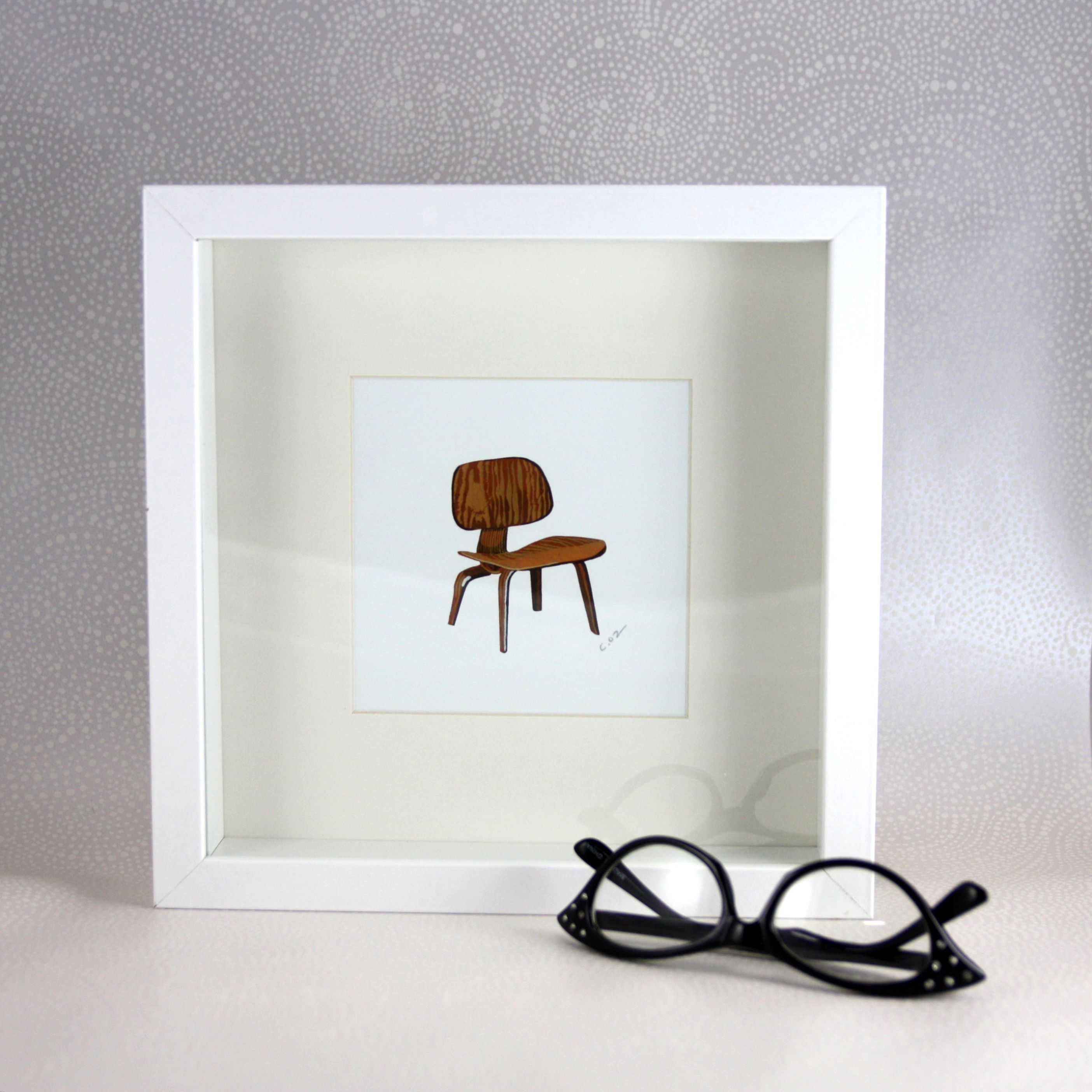 I have always been inspired by everyday things. I loved the notion that when the first Eames chair was in the production process, it was meant to be a mass-produced, affordable chair that anyone could own. I like to think of my artwork in the same manner. I feel that everyone should be able to afford art that they love for their home. Surely, I thought there were other people that felt the same way that I do, and still wanted a bit of Eames in their home, so I started painting a few of my favorite pieces of their furniture.