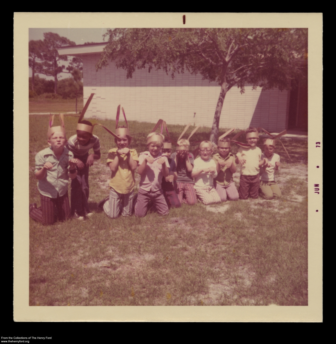 The collections of The Henry Ford include many artifacts related to famous innovators and revolutionary inventions, but we also include humbler artifacts that tell the story of day-to-day life in America. With the Easter holiday approaching, we’ve just digitized a number of related items, as selected by Cynthia R. Miller, Curator of Photographs and Prints. Her choices include this 1973 photograph of young boys wearing bunny ears, as well as additional photographs, greeting cards and postcards, advertisements, and other items. View all of this newly digitized material by visiting our digital collections.