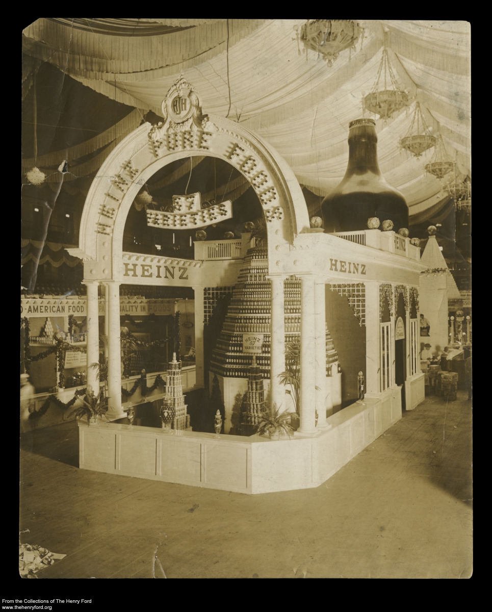 As we mentioned last week, we have been digitizing selections from our collections that relate to topics that will be featured on our brand-new TV show, The Henry Ford’s Innovation Nation. We’ve just digitized dozens of artifacts related to the H.J. Heinz Company, including this image of a turn-of-the-century exhibition booth. Follow up a visit to the Heinz House in Greenfield Village by perusing elaborate store displays of Heinz products, streetcar advertising posters, and images of food production. Browse all of our digital Heinz collections in our Digital Collections, and learn more about Heinz on Innovation Nation in the fall!