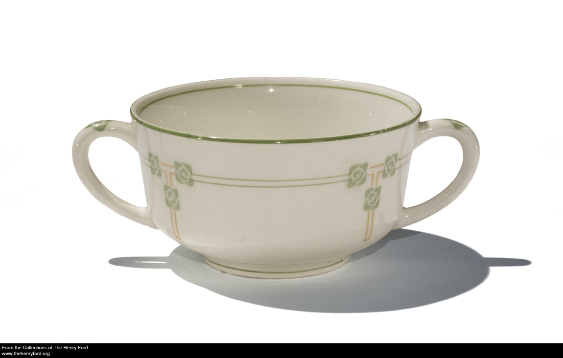 Friends Henry Ford, Harvey Firestone, Thomas Edison, and John Burroughs went on camping trips together for a number of years, calling themselves the Vagabonds. Their trips were quite luxurious, by camping standards, involving a sizable caravan of staff and equipment. Why eat off tinware, for example, when one could use china instead? The Henry Ford’s collection includes a selection of the early 20th century Tudor Rose china that these august figures used on their wilderness trips, including the bouillon cup shown here. View photos and artifacts related to the Vagabonds on our collections website.