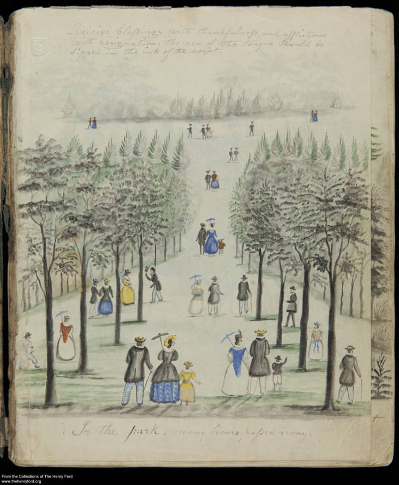 Last November, I made a trip to the Benson Ford Research Library to see a small (8-by-6.75-inch) album of watercolor drawings made by Lewis Miller, a Pennsylvania German carpenter who lived from the time of the American Revolution to the Centennial. I have long been intrigued by his drawings, which have provided me with great material for the history of American landscape design, my specialization as an art historian.