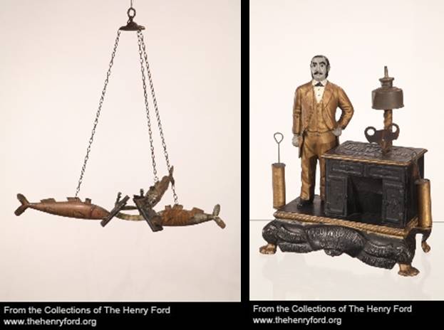 Working chronologically, as Henry Ford did when assembling the collection, I sorted the objects into categories. The process of selecting those that would be shown to the visiting collectors then began. Working with two representatives from the groups, Charles and I spent several days going through the collection determining which objects would make the cut. The collectors were interested in unique examples, patent models, and rare pieces. After careful consideration, 25 objects were selected, and we ended up with some very interesting and unique picks!