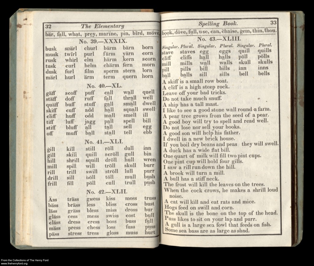 The Elementary Spelling Book, or the “Blue Backed Speller,” was used to teach several generations of Americans to spell and read. Over 100 million copies were sold in the 18th and 19th centuries.