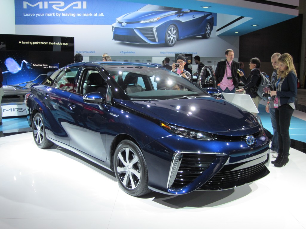 Toyota wasn’t the first automaker to market with a hybrid car, but its Prius went on to define the type. The company hopes to do the same for fuel cell vehicles with its remarkable Mirai sedan. The car is powered by an electric motor, but the electricity itself is generated by a chemical reaction between hydrogen and oxygen that takes place in a fuel cell. The only emission from the car is water vapor. The Mirai is about as green as it gets but, while gas pumps and electrical outlets are a dime a dozen, hydrogen fueling stations are harder to come by outside of Los Angeles and San Francisco. Clearly, Toyota is betting on that to change. Interestingly, one of Toyota’s NAIAS displays includes a pair of faux hydrogen pumps. Visitors will be surprised and, Toyota must hope, reassured to see that they’re not much different from gasoline pumps.