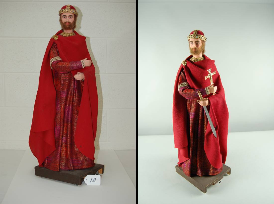 Missing elements such as the sword and crucifix for the Mieszkol I (the first king of Poland) figurine were fabricated using historical images as references. Check out the images (below) of the figurine before and after conservation.