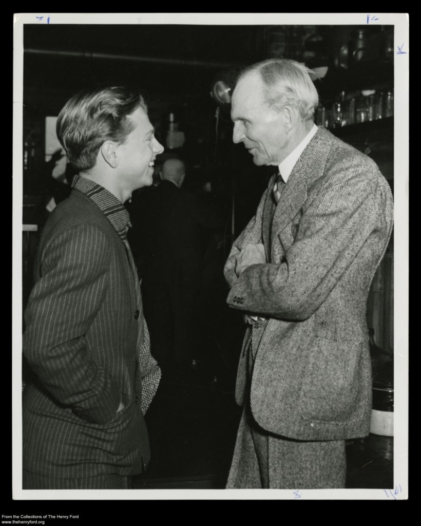 MacDonald's first library at Ford was in the Highland Park plant. There she met visiting friends of Henry Ford including Thomas Edison, George Washington Carver, actor Mickey Rooney, and author Damon Runyon, when they paid calls on Henry, who thirsted after interesting conversation. Mickey Rooney, who came to Dearborn to film a movie about Edison's life, was a particular favorite of Henry's, who enjoyed the young actor's energy and high spirits.