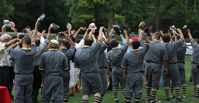 “Hip, Hip, Huzzah” echoed through the village with the annual World Tournament of Historic Base Ball. It was 1867 all over again as underhand pitches fairly met strikers at the plate, and gloveless fielders caught brown leather-covered balls.