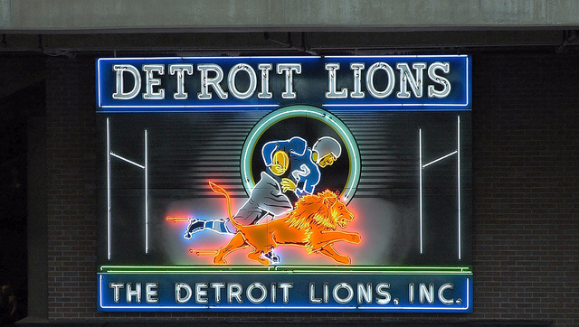 Learn the origin of the Detroit Lions neon sign currently hanging over the Pro Shop at Ford Field. A replica is currently in the "Gridiron Glory: The Best of the Pro Football Hall of Fame" exhibit in Henry Ford Museum.