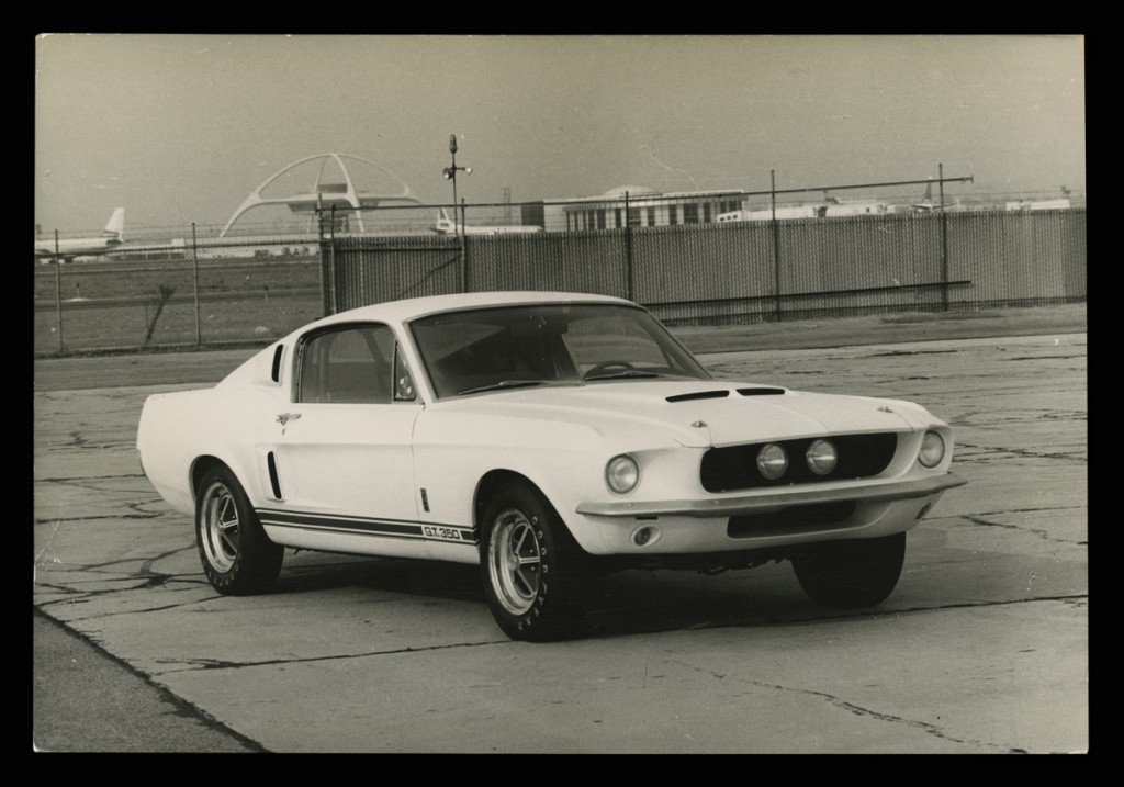 At the time, in mid-1964, the most powerful engine available for the Mustang was Ford’s 289-cubic inch, 271-horsepower “Hi-Po” V-8 – known to fans as the “K-code” engine for its designation in the Mustang serial numbering scheme. These surely were impressive figures when compared to Mustang’s standard 170-cubic inch, 101-horsepower 6-cylinder engine – or even the basic 210-horsepower V-8 – but Shelby American did even better, modifying the “Hi-Po” engine to produce more than 300 horsepower. Having added power, Shelby’s team next subtracted weight by removing the Mustang’s rear seat and replacing the steel hood with a fiberglass unit. With the suspension suitably beefed up, the Shelby Mustang GT350 was born.