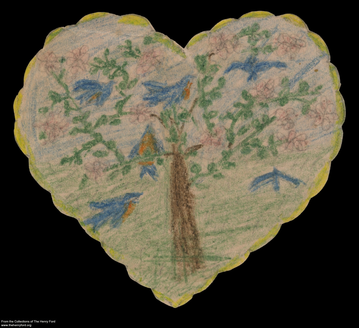 This time of year I feel so nostalgic about activities surrounding Valentine's Day! I fondly recall making cards for my mother on construction paper by coloring with crayons. Many looked a lot like this one in the museum's collections.I also have many happy memories of exchanging cards with my classmates in elementary school, especially cutouts featuring kids or animals.