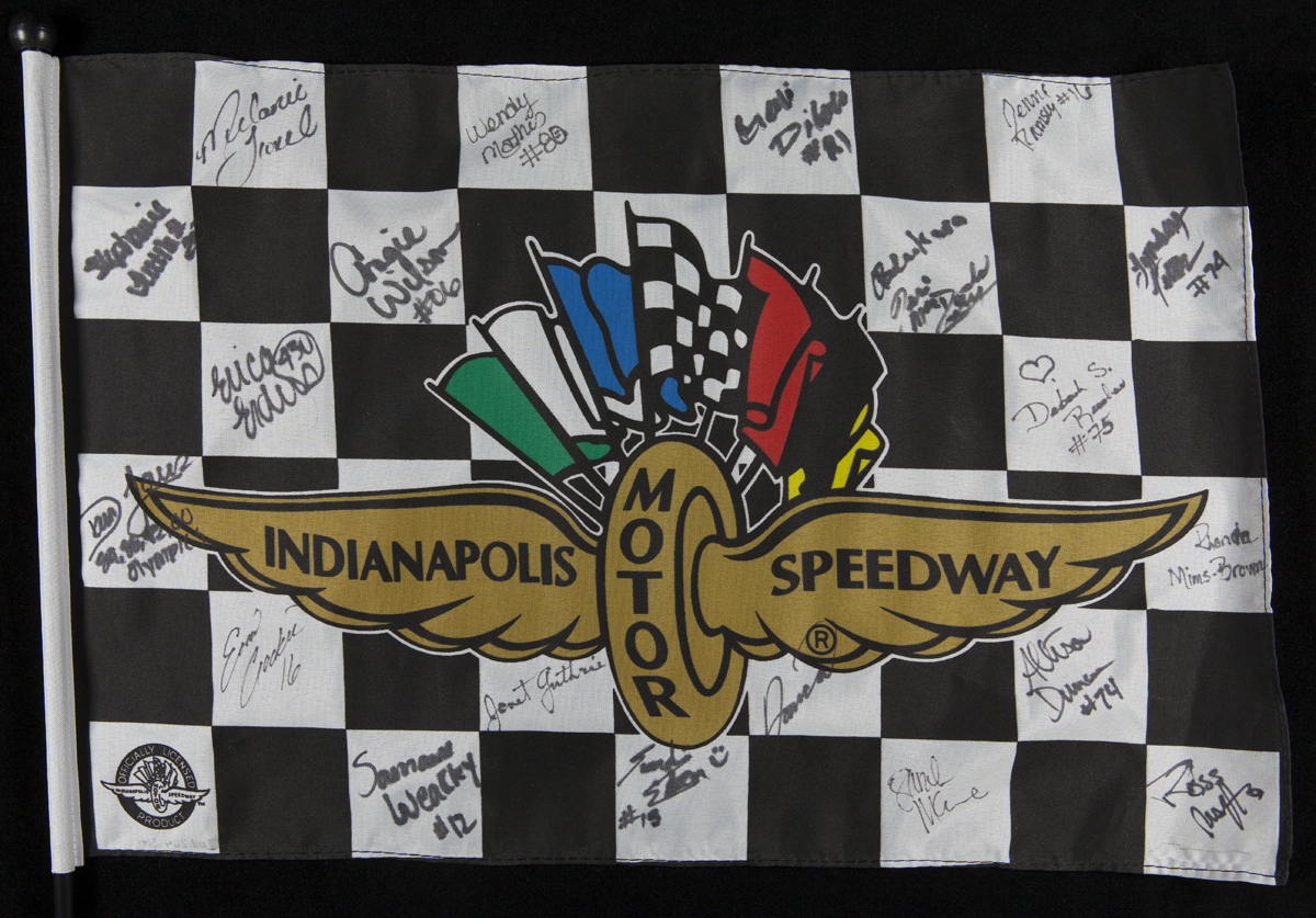 One artifact in particular spoke to us. At first glance, perhaps this checkered flag from the St. James collection in the Benson Ford Research Center doesn’t seem like anything extremely special. However, take a second look. Notice that each white square of the flag is signed by a different race car driver, and all of them were women. The signatures of Janet Guthrie (the first woman to race in the Indianapolis 500 in 1977), Erica Enders, and Erin Crocker can all be seen on the flag. These women, and all of the others who took a permanent marker and signed their name, have found success in racing and have proven their worth on the track and off.